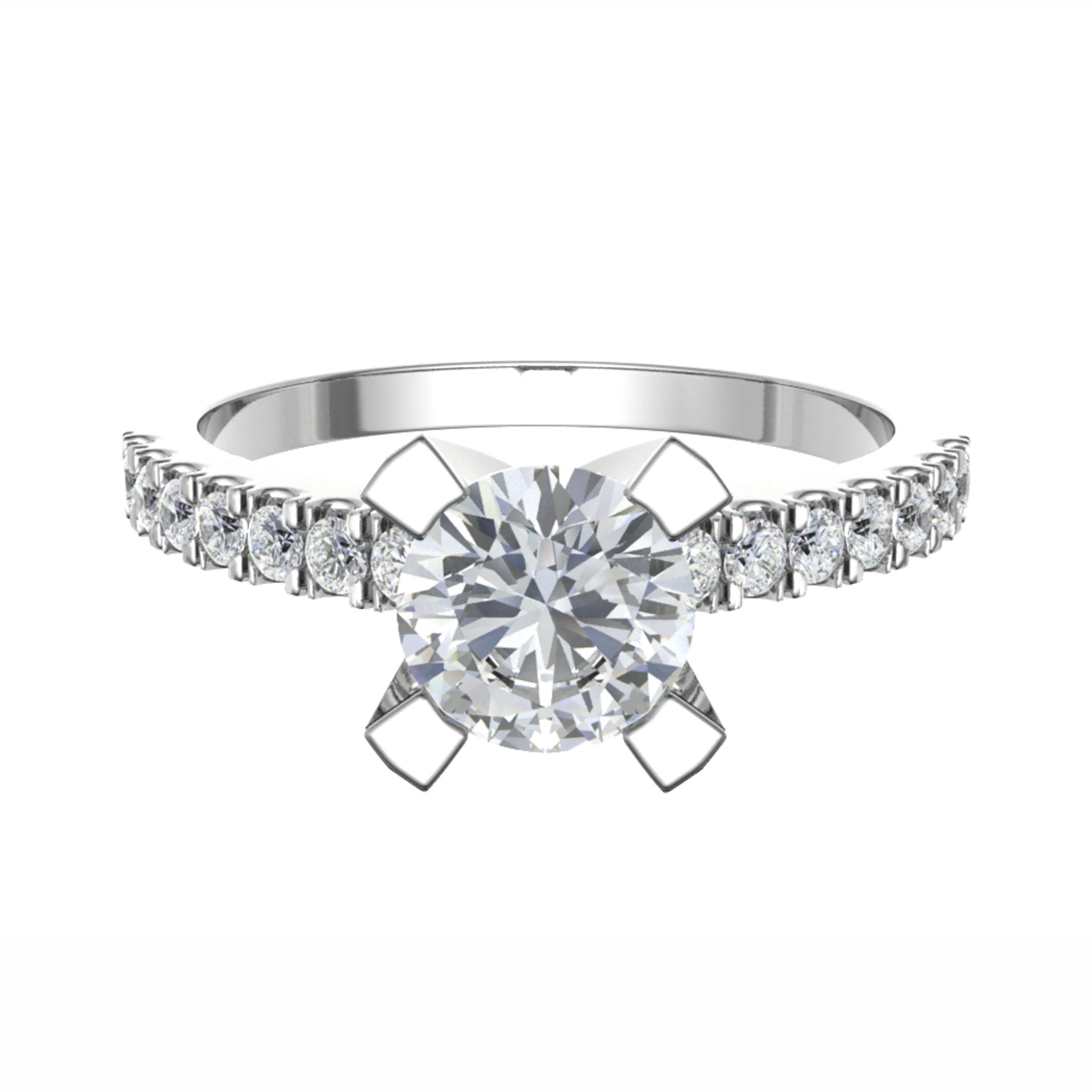 Perfect fit engagement ring with 4 prongs central diamond and micro pavé on the  shoulders