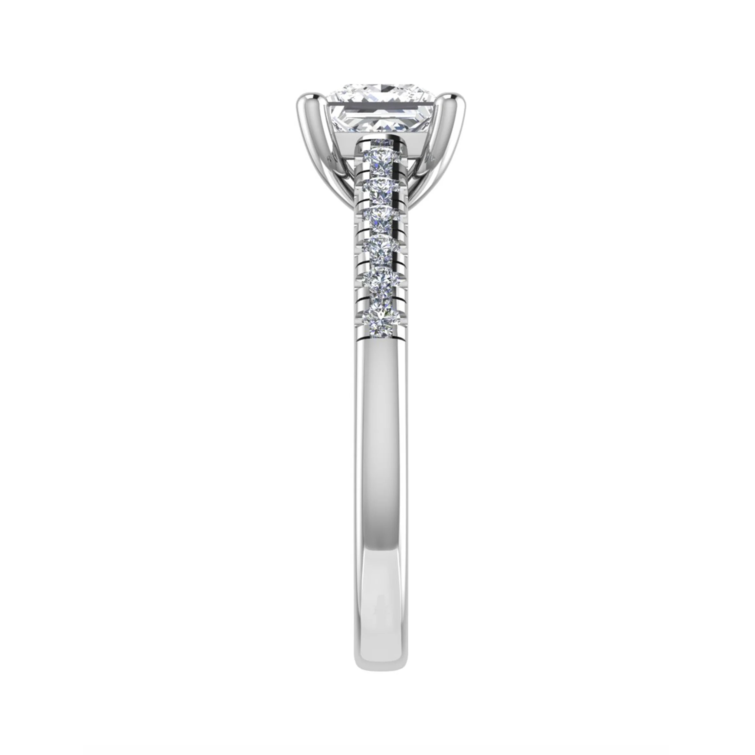 Classical engagement ring with Princess cut diamond and micro pavé on the shoulders